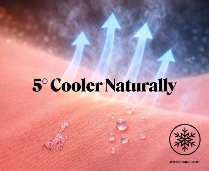HyperNatural fabrics are infused with cooling jade minerals that help regulate surface temperature and release heat during movement.